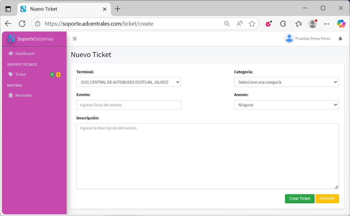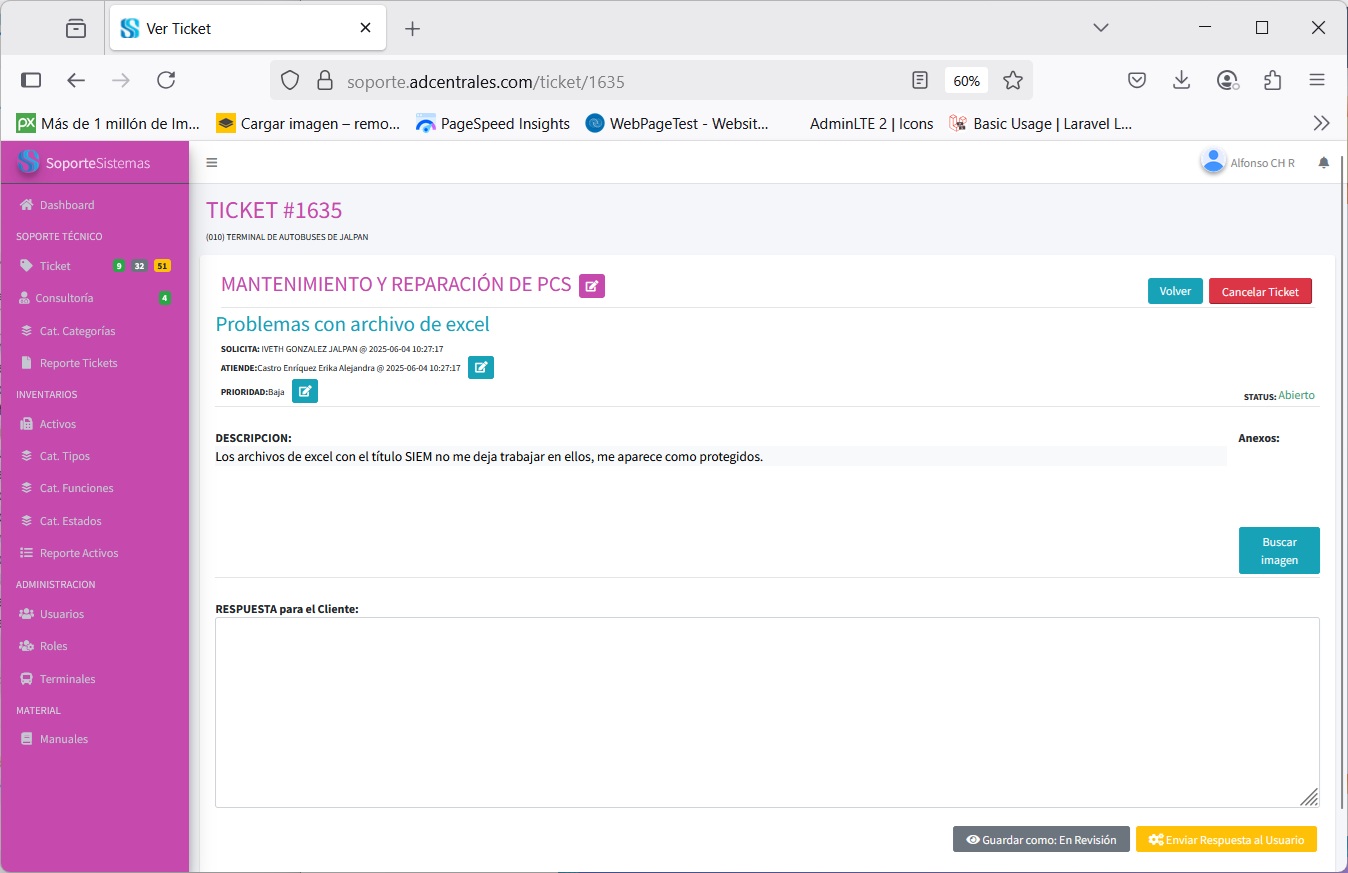 * Solicitud de soporte técnico