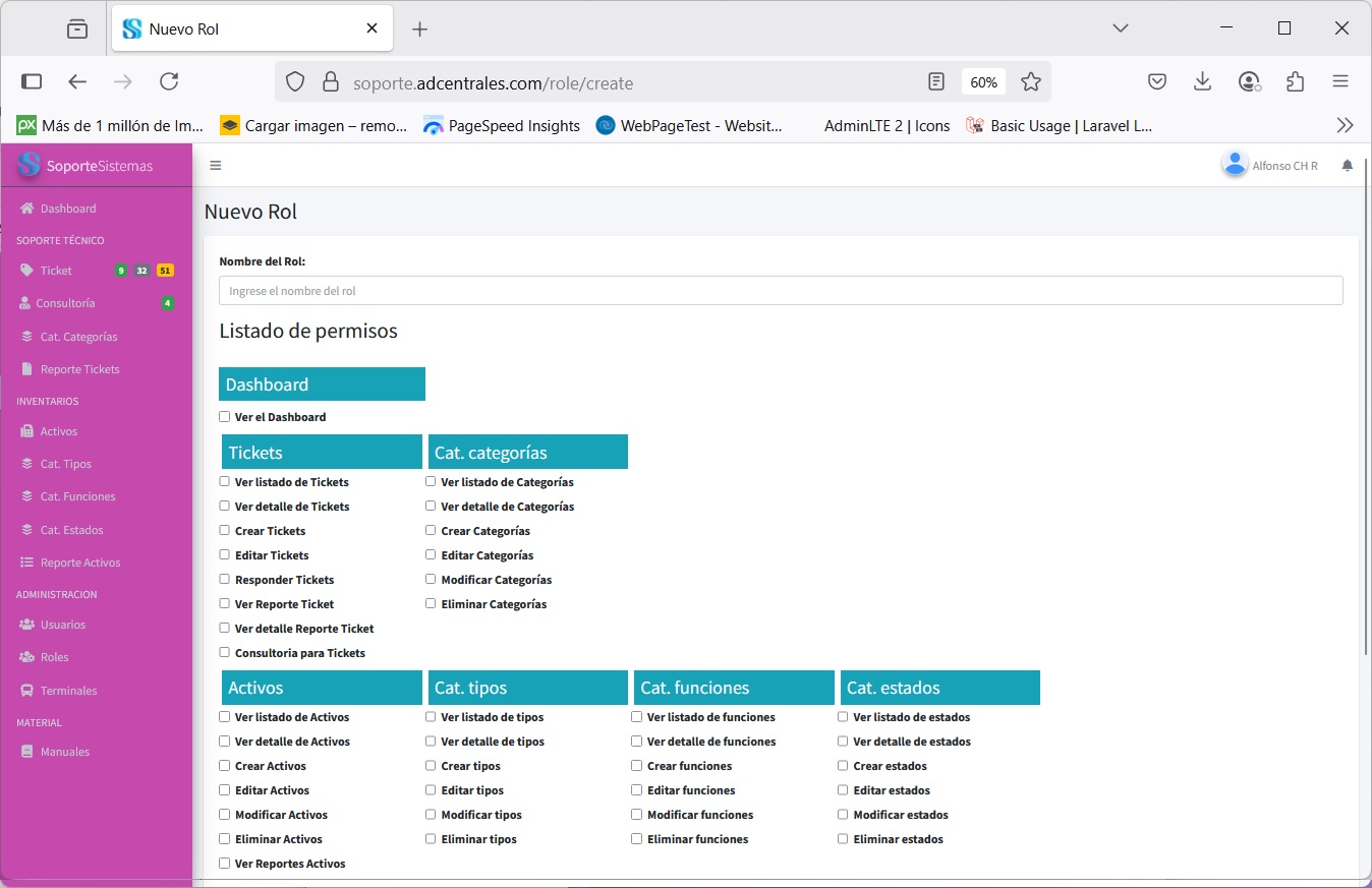 * Control de usuarios y permisos,