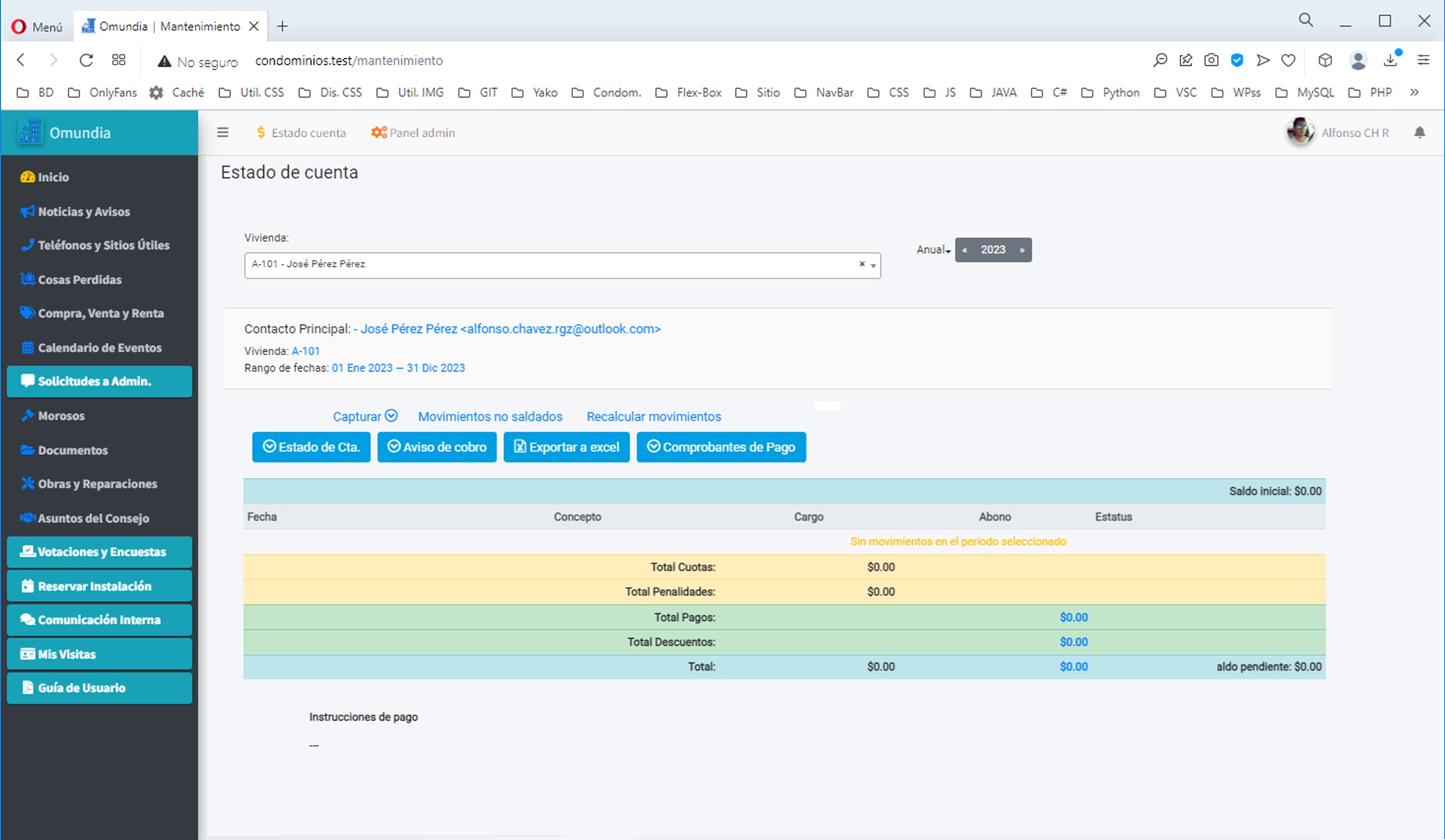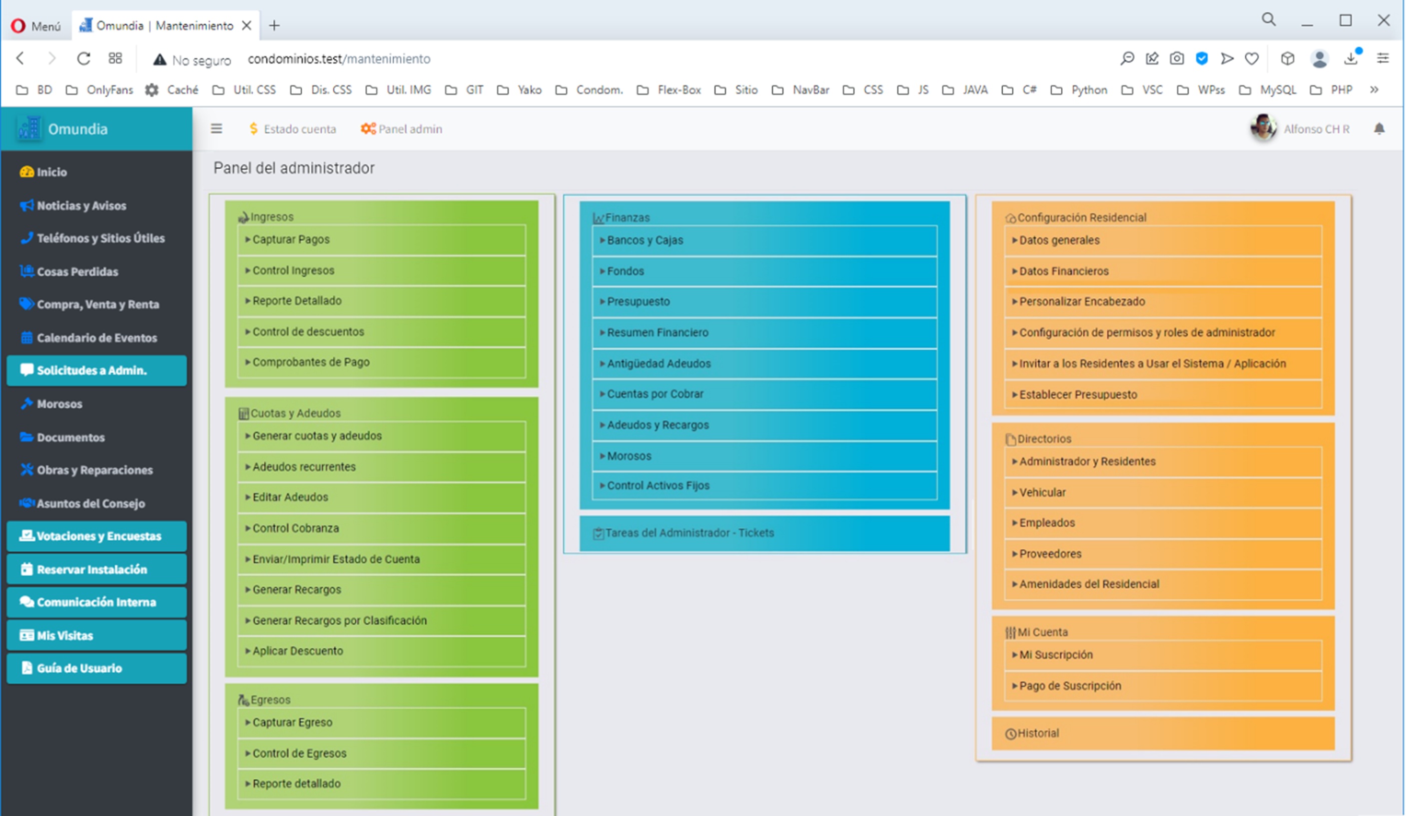 * FINANZAS (ingresos, cuotas y adeudos, egresos, cuentas por pagar) - Config. (residencial, directorios, cuenta)
