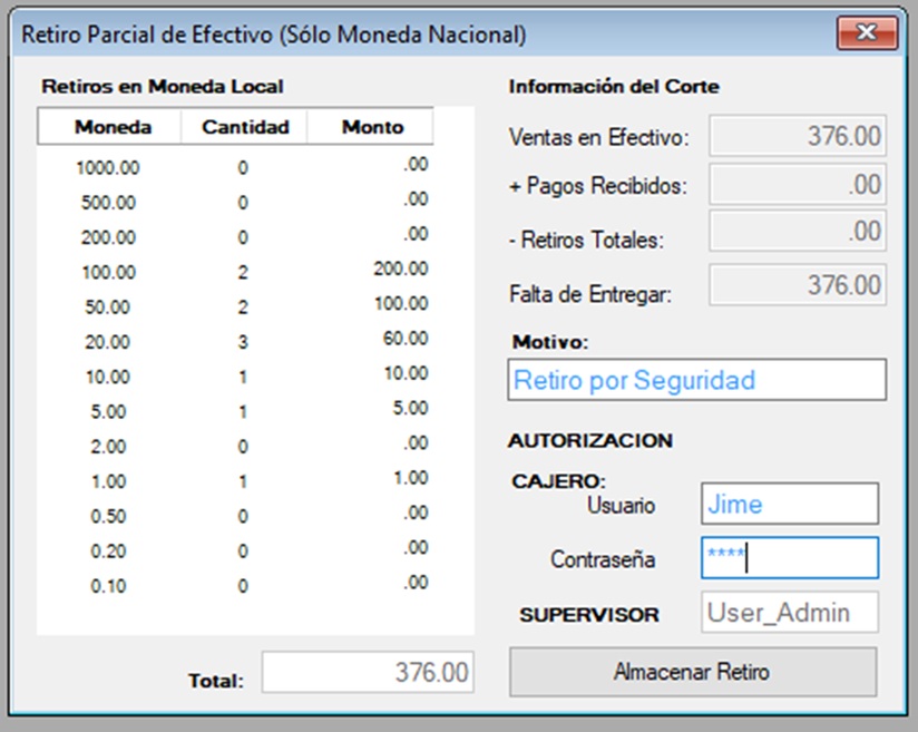 * iniciar cortes, retiro de efectivo, corte de caja