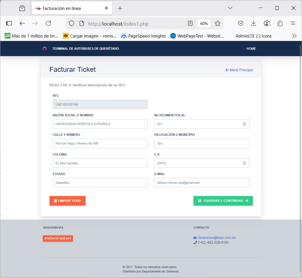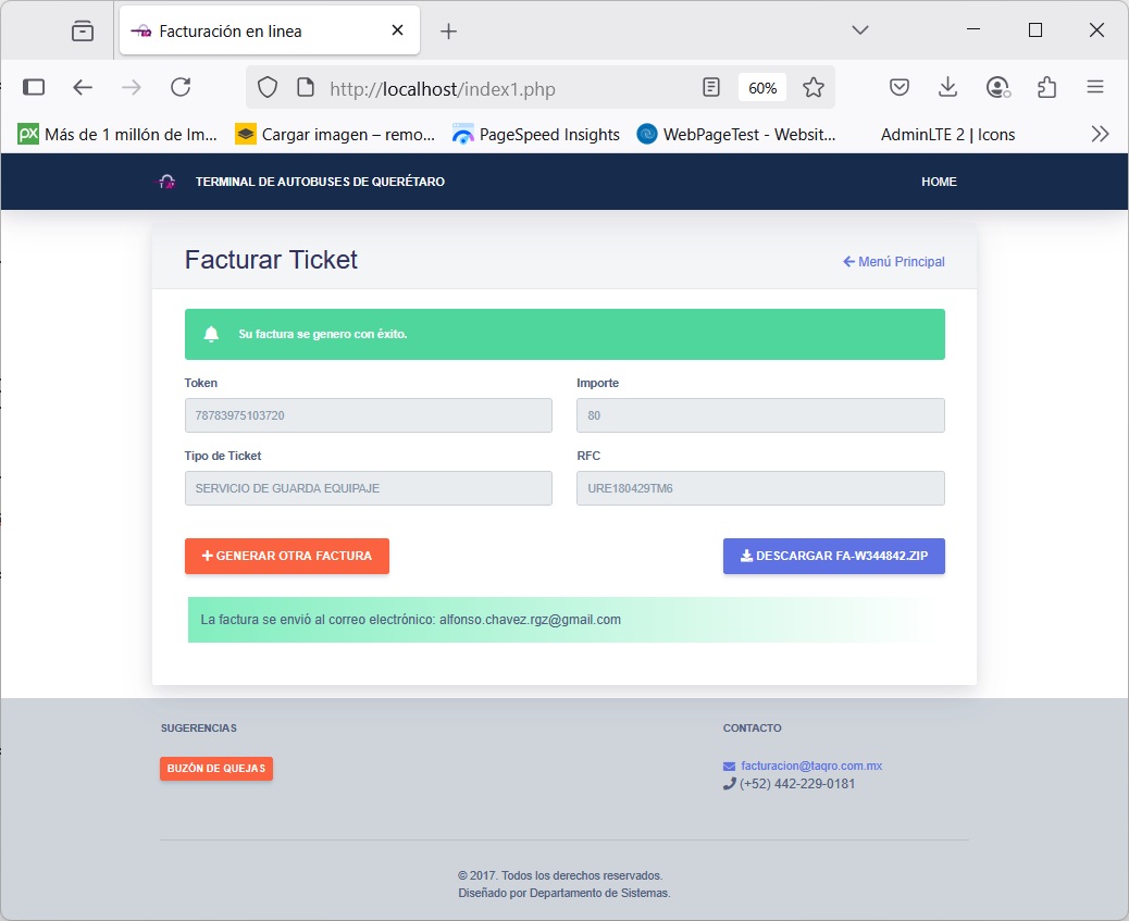 * Timbrado de tickets de clientes para facturar venta en locales, estacionamiento, guarda equipaje