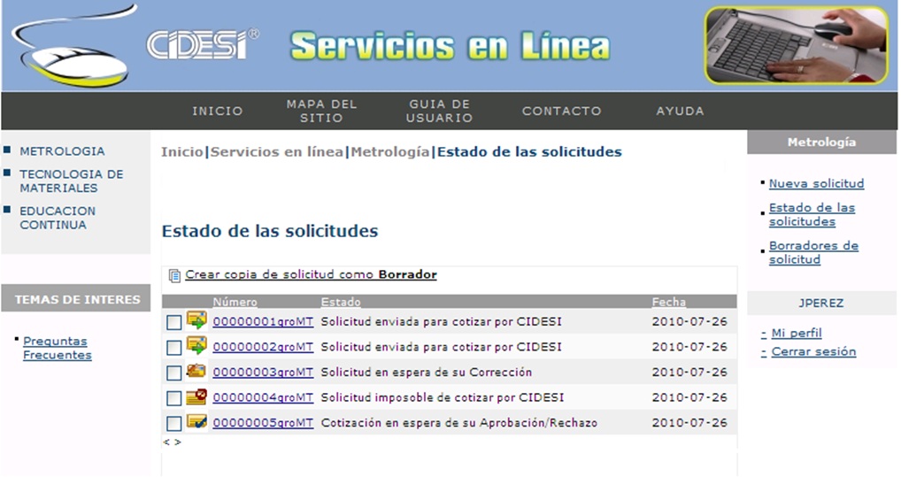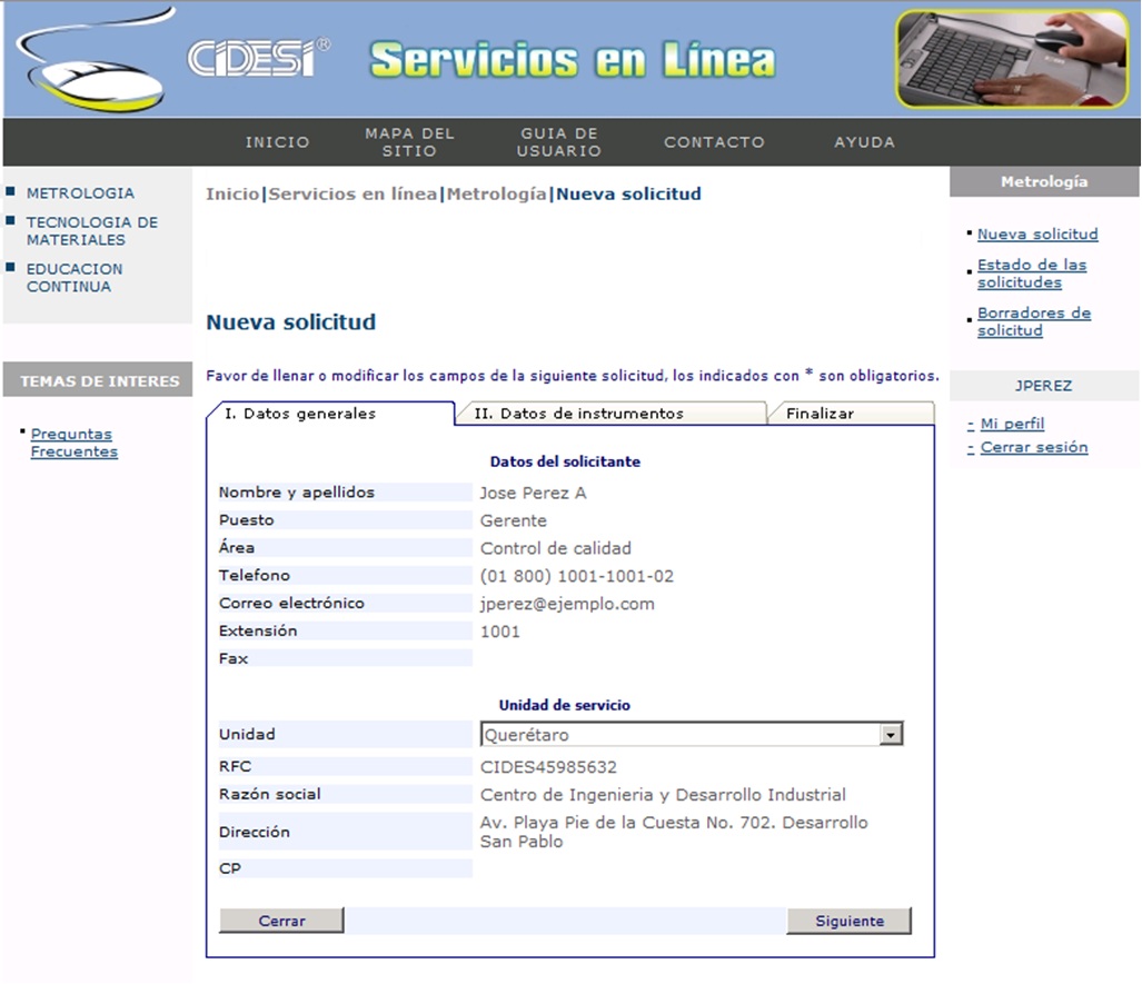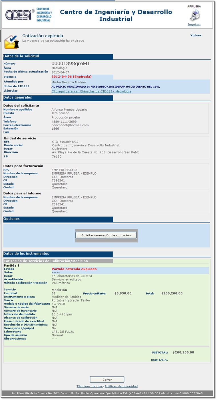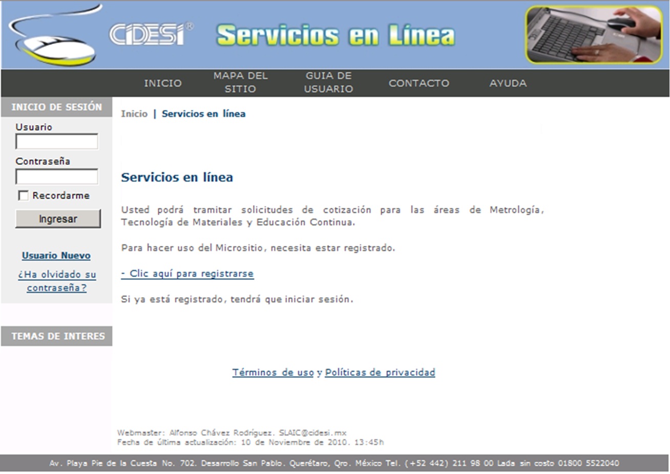 * Solicitud de cotización y recepción para servicios de Metrología, Tecnología de materiales y Educación continua