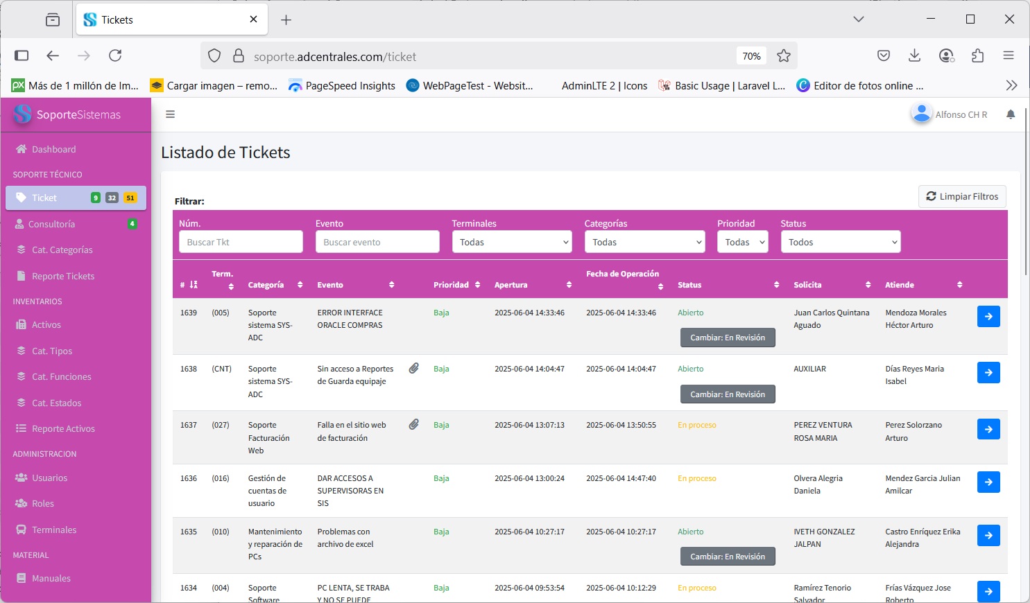 * Solicitud de soporte técnico