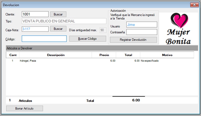 * Devoluciones de cliente
