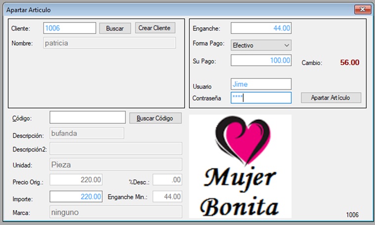 * Venta, apartado de artículos, reportes de venta