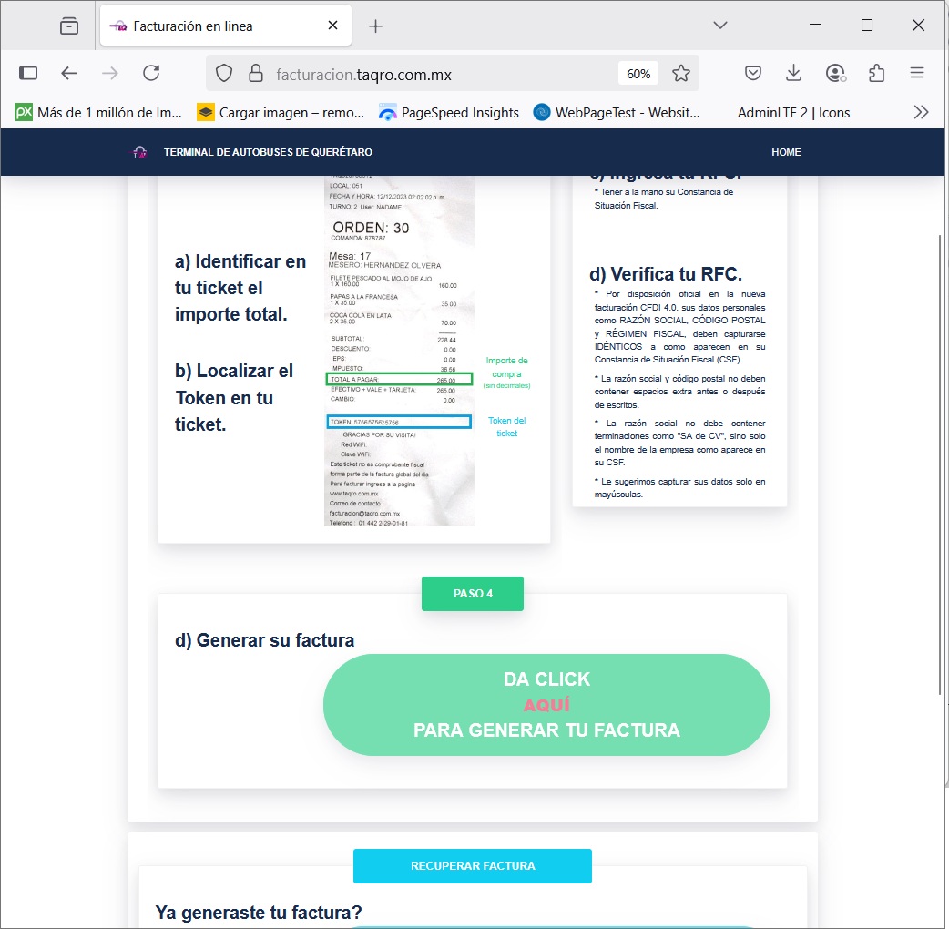 * Timbrado de tickets de clientes para facturar venta en locales, estacionamiento, guarda equipaje