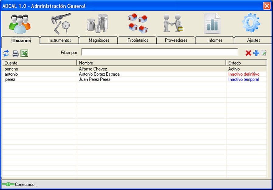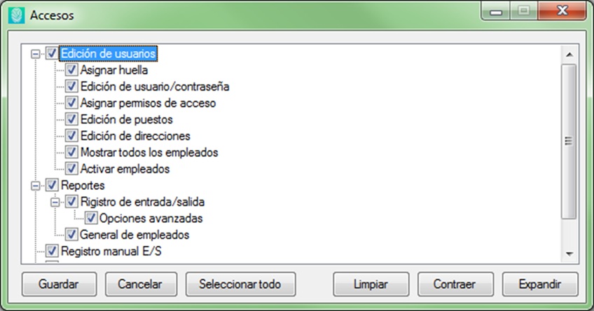 * Control de usuarios y permisos,