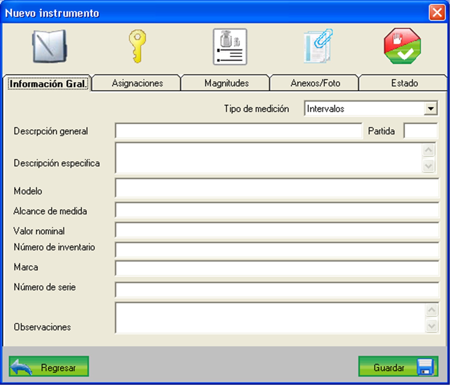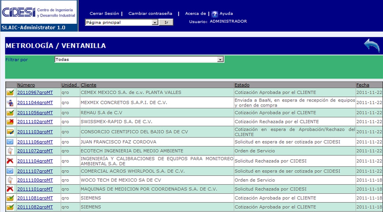 * Control para solicitud de calibraciones, avisos e históricos