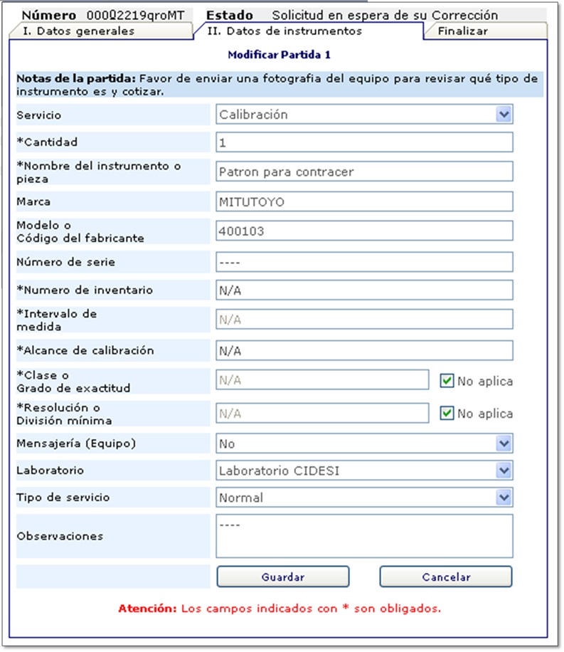 * Solicitud de cotización y recepción para servicios de Metrología, Tecnología de materiales y Educación continua