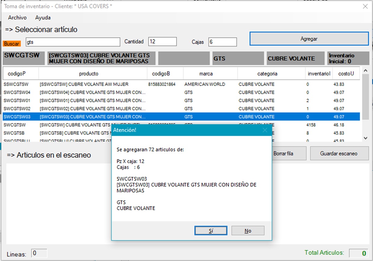 * Captura de artículos por escaneo